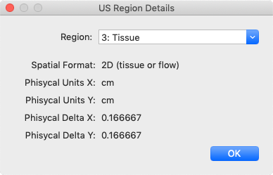 Take calibrated Ultrasound measurementsThe program supports the Ultrasound Region Calibration Module (0018, 6011), and it can take calibrated distance and area measurements in ultrasound DICOM files.When the user selects the distance measurement tool, one or more rectangles appear on the image. Each one of these rectangles represents a calibrated region. The active region has a green color and the inactive regions have a red color. Within the active (green) region the mouse cursor has a cross shape, and within the inactive (red) region has an arrow shape. The user can take measurements in the active region. By clicking the right mouse button, a pop-up menu appears and allows the user to select the active region. By selecting the menu command "View US Region Details...", a dialog box appears and it displays the type, the units and the delta of the active region. The user can easily check the accuracy of the measurements by taking the same measurement in the ultrasound machine and in the program. The program also allows calibrated area measurements, when the user has selected an area with a selection tool. The program by default uses for the calculations the first calibrated region that has spatial units (cm, mm) in its Physical Delta X and Y, but the user can use the "Region" combo box to change this region with another. |
