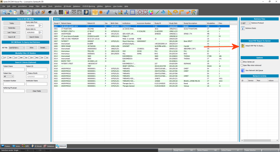 Attach PDF report files to studyThe program has the ability to attach PDF report files to local and remote studies. It creates a DICOM file that encapsulates the PDF report file, it creates a new series with description "PDF Report" that contains this new file and it attaches the series to the desired study.ContentsAttach a PDF report file to local studySelect the "Database" tab from the mode selection control, in the lower left corner of the main window.![]() Query the database to find the study in which you wish to attach the pdf file. Then, select the desired study and press the "Attach PDF File To Study" button. ![]() Select the PDF report file and press the "Open" button. ![]() After that, the program attaches the selected PDF report file to the study. ![]() Attach a PDF report file to remote studySelect the "Network" tab from the mode selection control, in the lower left corner of the main window.![]() Query the server to find the study in which you wish to attach the pdf file. Then, select the desired study and press the "Attach PDF File To Study" button. There is no need to download locally the study. ![]() Select the PDF report file and press the "Open" button. ![]() After that, the program attaches the selected PDF report file to the study. ![]() |