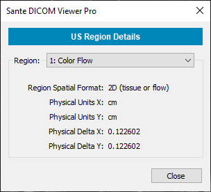 The program supports the Ultrasound Region Calibration Module (0018, 6011), and it can take calibrated distance and area measurements in ultrasound DICOM files.
