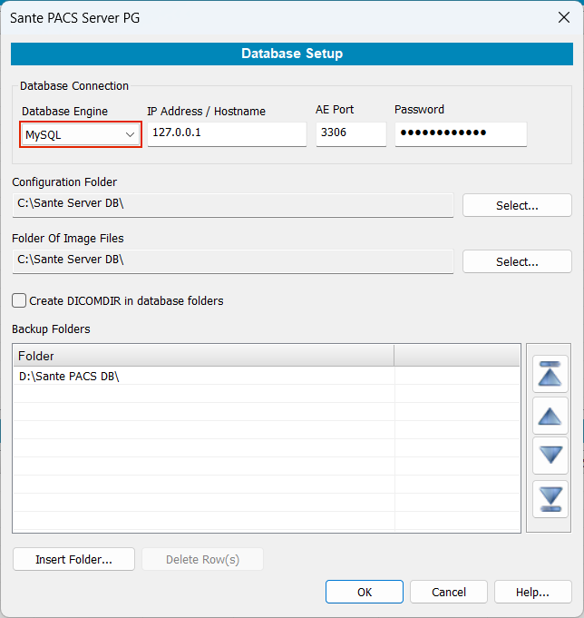 Insert The correct IP address, port and password for connection with the MySQL database engine.